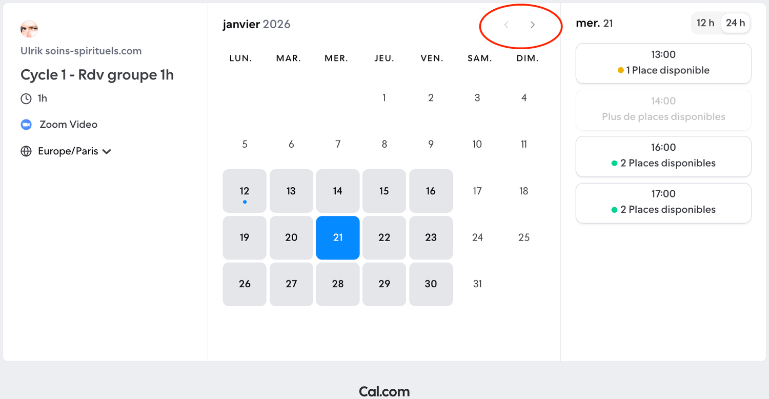 IMPORTANT : Si la date ne vous convient pas, vous pouvez changer de mois en cliquant sur les flèches.